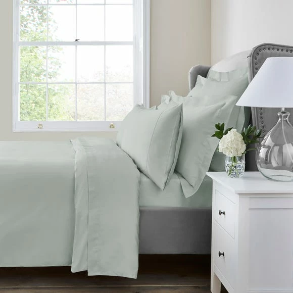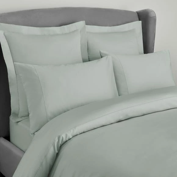 Featuring a pale grey green colourway, this duvet cover has been crafted from a sumptuously soft 100% cotton sateen with a 300 thread count which provides an opulent handle that can be machine washed for easy care. This duvet cover comes with a premium 10 year guarantee, in a variety of sizes and a has wide range of coordinating items available.