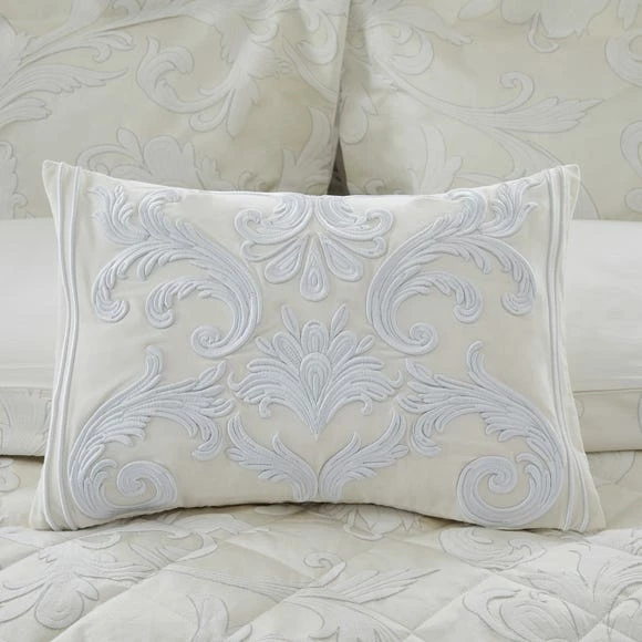 Featuring a luxury raised embroidered design. this Dorma cushion is filled with opulent duck feathers and covered in a cotton velvet fabric in a warm cream colourway. Coordinating accessories available.