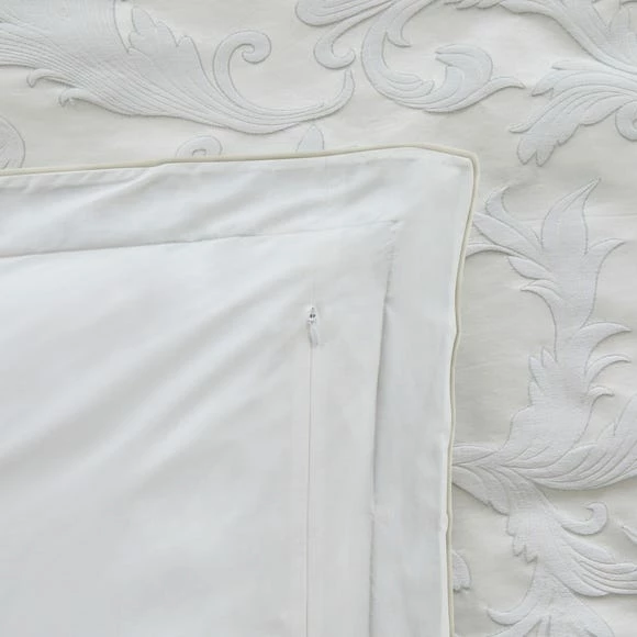 Resplendent large scale scrolls are woven into a decorative raised cream jacquard design on this opulent Dorma Acanthus oxford style pillowcase pair with piped edge styling. Finished with a concealed flap closure, these oxford pillowcases are machine washable and are crafted from a soft cotton blend for a sumptuously soft feel. Coordinating duvet cover and accessories available sold separately.