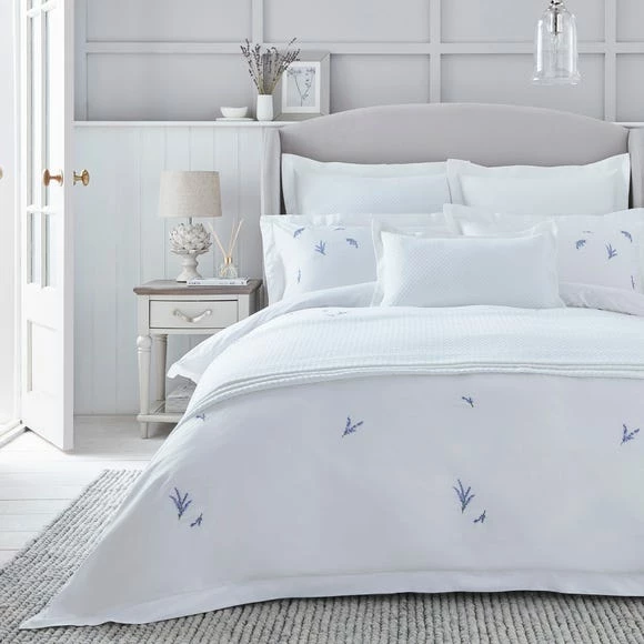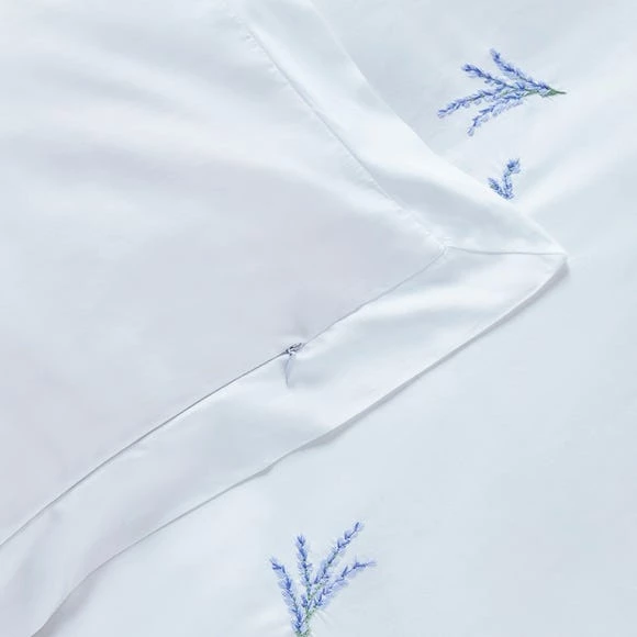 Boasting elegant sprigs of lavender scattered on a luxurious 300 thread count cotton sateen base, this duvet cover and pillowcase set is perfect for adding a stylish and timeless touch to your bedroom. Made from 100% cotton sateen this bedding set is soft, durable and machine washable. This duvet cover comes with a zipper fastening, which makes changing the bedding super easy and no-hassle whatsoever!