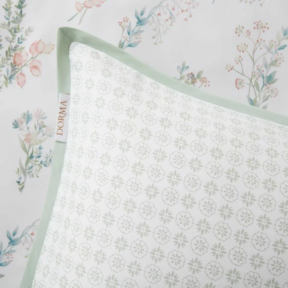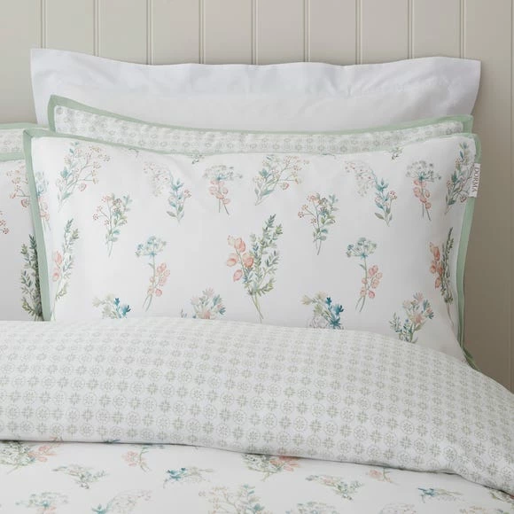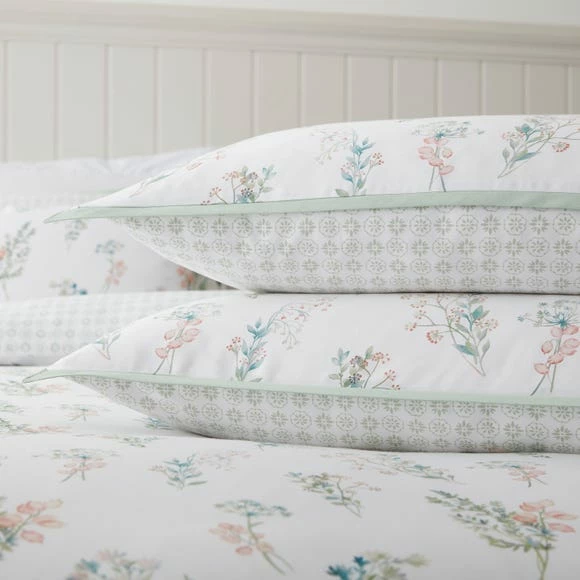 Delicate watercolour styling gives Beatrice’s posies an added element of serenity. This elegant design has been digitally printed to capture every detail on smooth and silky 300 thread count cotton sateen. The reverse features a complementary pattern in sage green, allowing interchangeable styling when desired, and both sides are brought together with flat piped edging. Pair these pillowcases with the matching Dorma Beatrice bedding set and curtains for a coordinated bedroom interior.