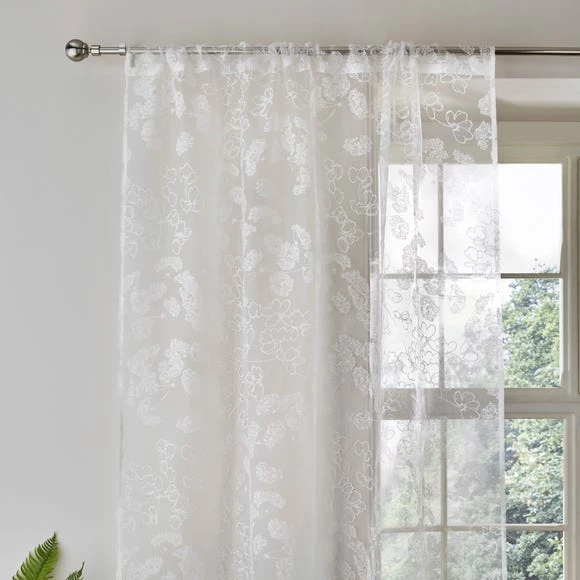 Crafted in a versatile white colourway and designed with a subtle textured finish, this Dorma Slot Top Voile Panel from our luxury Dorma collection are perfect to complement a variety of decorative styles. Fashioned from quality materials for improved longevity, the delicate design is made to effortlessly transition with your décor without ageing a day. Easy to hang from a slot top header, the modern floral voile will add a beautiful and welcoming touch to your living areas. Available in a selection to sizes to suit your requirements.