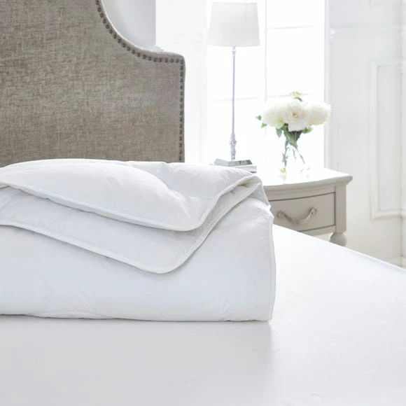 Suitable for all seasons, this 10.5 tog duvet from the premium Dorma range has a cosy spiral fibre polyester filling that will help to keep it fuller for longer and evenly distributed. This high quality 233 thread count duvet also features a sumptuous, crisp 100% cotton cover to provide maximum comfort all night long. Available in a choice of sizes and crafted in the UK, its anti-allergy properties make it ideal for allergy sufferers while it’s machine washable for easy care and cleanliness.