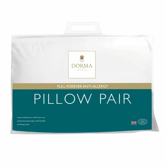 Beautifully crafted with a luxuriously crisp 100% cotton cover, these firm-support pillows from the premium Dorma range stay fuller for longer thanks to the luxurious spiral fibre polyester filling for a higher quality. With an added deluxe 233 thread count, this pillow pair has been anti-allergy treated and has a double stitched piped edge finish for ultimate durability. Keep your pillows in tip top condition for longer with our range of Pillow Protectors