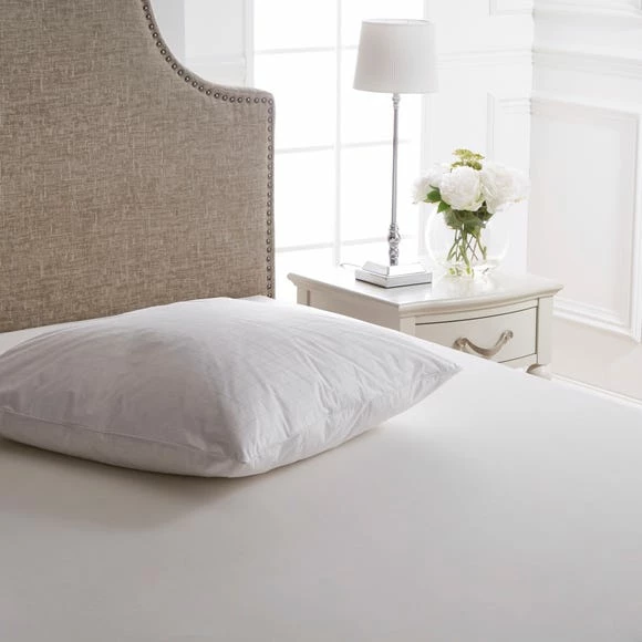 Add a luxury high-quality touch to your bed with this Dorma Hungarian Goose Down Pillow. Providing you with sumptuous soft support this pillow is ideal for front sleepers. Carefully crafted in the UK with a 100% cotton jacquard cover for sumptuous comfort, this opulent Dorma pillow is filled with top-quality 70% Hungarian goose down and 30% feather. Down is known for its outstanding softness and insulating properties which help to prevent drafts and cold spots to keep you perfectly snug at night. This pillow has a sumptuous 300 thread count and is machine washable for easy care.