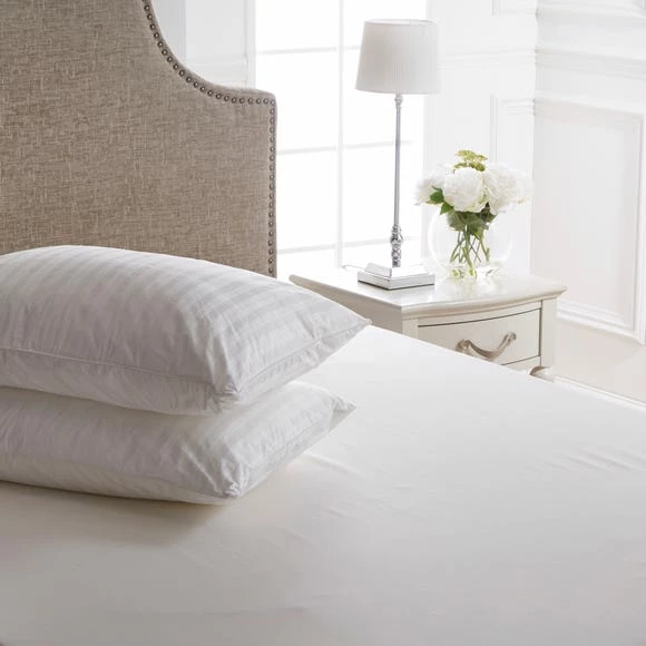 Crafted from superior 300 thread count cotton, thesesumptuous medium-support pillows from the stylish Dorma range have a luxurious super fine polyester filling and are finished with durable piped edges. With indulgent medium support, this pillow pair is ideal for back sleepers. These two quality supreme fill pillows, with crisp cotton handles, are machine washable and ideal for allergy sufferers thanks to their anti-allergy properties. Keep your pillows in tip top condition for longer with this range of Pillow Protectors