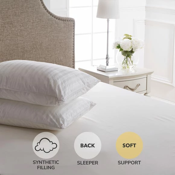 Crafted from superior 300 thread count cotton jacquard, these soft-support pillows from the stylish Dorma range have a luxurious super fine microfibre polyester filling and are finished with durable piped edges, making them ideal for back sleepers. These two quality supreme fill pillows are machine washable and ideal for allergy sufferers thanks to their anti-allergy properties. Keep your pillows in tip top condition for longer with our range of Pillow Protectors.