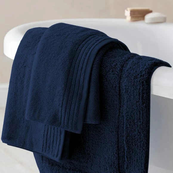 This range has been created in a luxurious Navy colourway which is a beautiful colour to add into your bathroom. This Sumptuously soft, highly absorbent towel has been created using the finest cotton yarns blended with TENCEL™ Lyocell fibres derived from responsibly sourced wood pulp and produced in an environmentally responsible, low impact and closed loop process. Closed Loop means there is no waste in the manufacturing process, everything can be recycled, used again or go back into the environment.