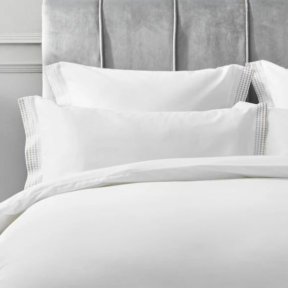 Featuring smart rows of ombre embroidered dots, this easy to care for 300 thread count cotton sateen pillowcase, is perfect for adding an elegant and timeless touch to your bedding. Finished with Oxford edge styling, this pillowcase brings a refined contemporary feel to your bedroom. Made from 100% cotton, this pillowcase is soft, comfortable, and machine washable. A matching duvet cover and pillowcase set is also available.
