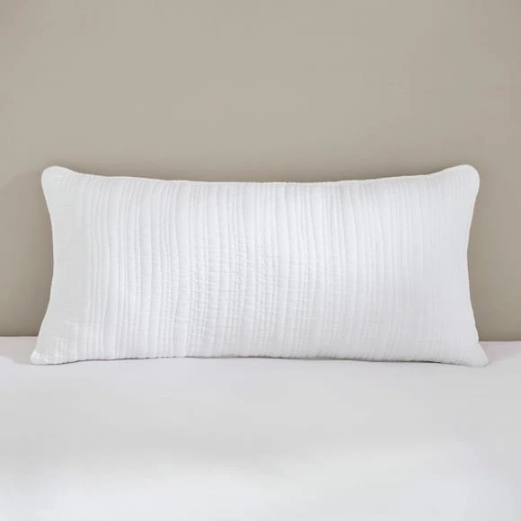 The Dorma Purity Chilton boudoir cushion will let you feel a premium kind of comfort. Crafted with a soft, supple 100% cotton and plump feather filling, this cushion features a channel-stitched embroidered design to create delicate quilted design. Coordinate the cushion with the matching bedding accessories available in the Dorma Purity Chilton range.