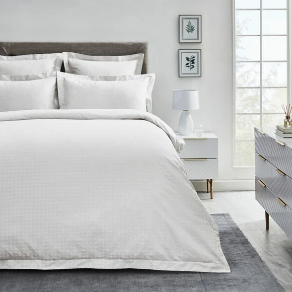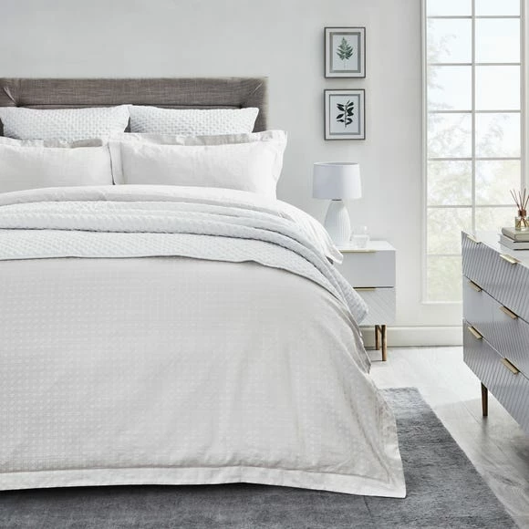 Boasting a basket weave design, this Dorma Marlia duvet cover and pillowcase set is perfect for adding an elegant touch to your bedroom. Printed onto beautifully soft cotton fabric and with a 300 thread count, this bedding set is soft, luxurious, and machine washable.